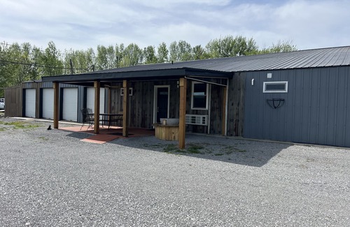 Completely new suite that was just completed in April 2024. The cozy bedroom has a King bed. The loft has a twin bed so you have to climb the ladder for the loft. Fully equipped kitchen is ready for long term stays. The large bathroom boasts a huge dual head shower and double vanity granite sink. We designed this to be as a hotel type suite with an identity as a Rustic interior. Parking is flexible to your needs. We have had several quests with large trailers. We make accommodations for your ease with a little notice. Our goal was a rugged, comfortable and low maintenance suite to accommodate a variety of travelers. Don't forget the hunting seasons. (Bourbon season is year round ! )