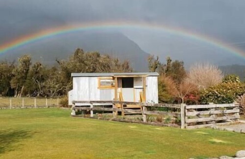 A unique and cozy hideaway to relax and enjoy the beautiful scenery of Fox Glacier. Tastefully decorated in a vintage style theme, enjoy a drink in your own private garden and be entertained by our farm animals. An idyllic spot for honeymooners and solo travelers nestled near the base of the Southern Alps as part of Rocky Creek - a 100-acre farm. Continental breakfast is included. The space features a Queen bed, a private ensuite, a kitchenette and a porch. The Shepherd's Hut has a lovely private garden and farmland valley outlook and you can catch an exceptional West Coast sunset from the porch. It is located within walking distance to the Fox Glacier town center, close to bars, cafes and restaurants, guided tours and walks. Access to the entire hut, private bathroom and the grounds of the entire property surrounding The Farmhouse, Pods and Hut. The Hut is independent from The Farmhouse (where we live) and offers self-check-in - I take my guests lead on guest interaction and generally leave you to it but if you need me I am only a message away or you are welcome to enter The Farmhouse and say hello. The Shepherds Hut is located in a very safe neighborhood surrounded by farmland, in nature yet only a stones throw from the town center where there is a great selection of cafes, bars and restaurants as well as guided tours, walks, glacier access and experiences and even a glow worm dell! Just down the road you will find Lake Matheson - a globally famous must-see. We recommend lunch and coffee at the Matheson Cafe after or before a walk around the lake. Lake Gault is a fabulous walk for those looking for a little bit more of a challenge and a visit to our local beach - Gillespies Beach and its walking trails offers a great half to full day out! There are a few different ways to see the glacier, if you want any tips please send me a message. The Hut is walking distance to town but you will need a driver or vehicle to explore the wider area.