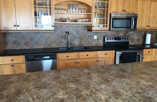 The living and dining room areas are ideal for entertaining and family get together. The living room has a sectional 6 pieces couch with 65" flat screen Smart TV, and DVD Player. On rainy days you can enjoy watching movie together using Netflix or blue ray / DVD collection provided for you or play Dart Board, Wii, Nintendo Switch and board games.