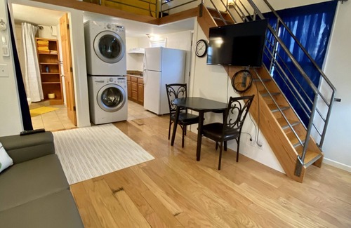 We have 2 tiny houses on 6 acres here in Burnet. There’s a large fire pit area with a grill and outdoor games for our guests at both houses to use. Buchanan Lake and Inks Lake are only 15-20 mins away! Spider Mountain is only 20 mins away! My wife and I live on the property and manage it so we are close by if you need anything. You will need to climb stairs to get to the sleeping loft in this tiny house, and the sleeping loft has a low ceiling so it is ducking room only. Pet fee is $20 extra.