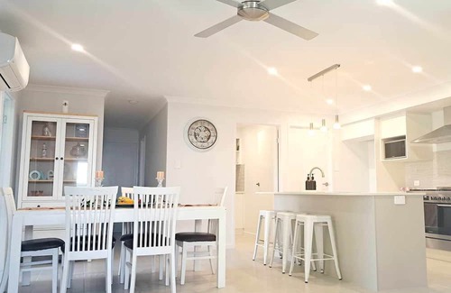 With 2 spacious living areas and a huge enclosed backyard, there's plenty of room for relaxation and play. All bedrooms have fans and the open plan kitchen, family room and dining area are air conditioned.