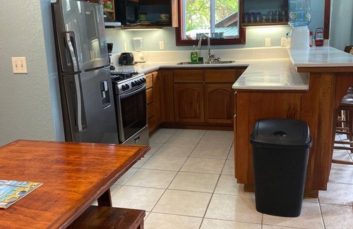 The Wave condo is a ground-floor unit that has a king bed, a single bed, and a full-size fold-out murphy bed. It is the perfect family condo, or great for a couple wanting a lot more space. This unit has a newly renovated bathroom with beautiful tile, walk-in shower, and custom double vanity sink. The newly renovated full-size kitchen allows you to cook meals in your condo on days you don't want to explore island restaurants. The kitchen includes beautiful custom counter tops, full functioning stove, fridge, and other key necessities at your disposal. Enjoy air conditioning throughout the unit, and LCD TVs to help round out all the custom touches to this great place to stay. You are steps from the dive shop and your porch has a full view of our beautiful infinity pool and the Caribbean Sea. (Sleeps 5 comfortably)