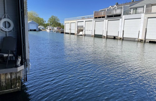 Wayward Sailor's Boathouse (w/boat well that accommodates a 35' boat) overlooks Venetian Marina, minutes from Cedar Point Amusement Park. Boathouses are unique to Sandusky, as they hover over the waters of Lake Erie. THE BOAT PICTURED IN THE BOAT WELL PICTURES IS NOT INCLUDED IN THE RENTAL. Guests will be sleeping ON the Lake! Features 3 bedrooms (2 overlook the Marina), deck in boat garage to sit out over lake & fish, outdoor spaces for BBQing and lounging, and easy access to Cedar Point, Sportsforce, ferries, watersports, downtown, stores & restaurants. Your family will never forget this place! This updated space has been recently remodeled. Sonos surround sound bluetooth system is perfect for filling the summer nights with music & outdoor spaces beckon guests to sit back, relax, and enjoy the Lake Erie sunshine. The large kitchen helps guests prepare meals to cut down on vacation costs. Two Smart TVs feature cable, & Wifi is on property. Laundry machines on site. Weber propane grill is in one outdoor space, along with a picnic table, comfy outdoor couch & chairs, & a porch swing is out back on the deck where guests can fish. The ambiance of the fun, energetic waterfront community is unmatched in the area. Neighbors are friendly, fun people, & the aura of the area is positive & spirited.