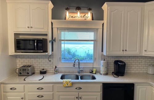 The Weathervane - Recently renovated, with modern conveniences, this majestic home will easily accommodate 7 - 11 people. It has an ambiance that invites you to make yourself at home. This well-maintained home is kept in immaculate, pristine condition - both the inside and outside. Your hosts have created perennial flower beds that are lovingly maintained. Glass doors lead from the kitchen area to an outdoor covered dining area that is surrounded by the well groomed gardens in the yard. Enjoy this very peaceful area that is fenced in for privacy.