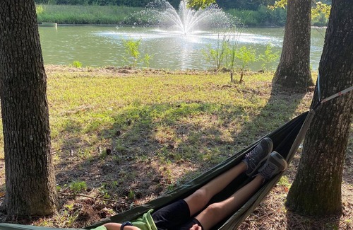 There is a sparkling 1/2 acre pond with a fountain, ducks and fish, lots of trees and fresh air! As well as horses, sheep and mini donkeys!