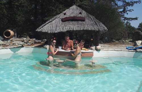 Medieval Mas on 2 ha, winner on M6, my house is the most original in France. Beautiful setting, medieval decoration in all rooms. Small drawbridge, portcullis, armor, dining area and private terrace, barbecue, 3-level swimming pool with 4-seat bar in the basin. Green zone. Here is a gite and a guest room, out of the ordinary. You can book the massage area. A professional: will offer you either a Relaxation Massage or Tuina Therapeutic Massage. You can also discover the Mas ceramic workshop and its exhibition. Your stay will immerse you in another time.
