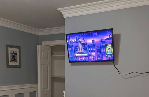 The Yay Frame- KING BED, HOT TUB/ SAUNA, FOOSBALL, PETS/KIDS is located in Gansevoort. The Yay Frame- KING BED, HOT TUB/ SAUNA, FOOSBALL, PETS/KIDS provides accommodation, featuring Security/Safety, Spa, Fireplace/Heating, among other amenities. This Apartment features Security/Safety, Spa, Fireplace/Heating, to make your stay a comfortable one.