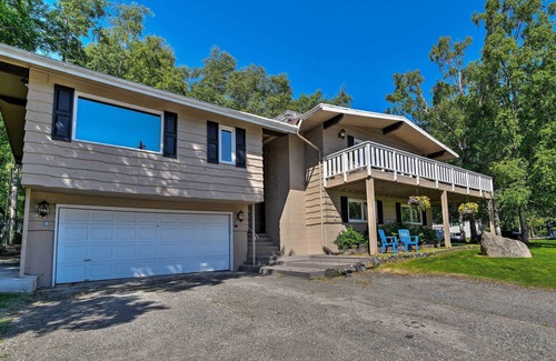 Spend your next Alaskan adventure staying in style at this Anchorage vacation rental! With a furnished wraparound deck, gas fire pit, and prime setting surrounded by scenic hiking spots, this 4-bed, 3-bath house makes the perfect destination for a memorable family getaway. Explore trails at Kincaid Park or tour the Alaska Zoo before returning home to cap off the night with a favorite movie in the theater room.