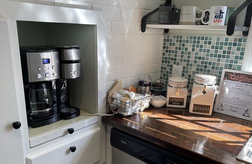 This is the perfect house for wedding parties, reunions, families coming to see a game or visit UVA, or friends getting away for the weekend. The open living area and huge island are great for reconnecting and relaxing.. The kitchen is stocked with everything you’ll need to cook, if you choose, and there is a coffee maker with coffee provided. Our goal is to make your stay special, so we do our best to leave special touches that help you relax and enjoy your time away.