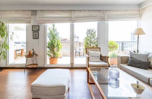 Our modern Penthouse is located in the most precious location in Nisantasi! With gorgeous views from our private terrace. This bright modern home boasts a beautiful living room, dining area with a fully equipped kitchen, a modern bathroom and spacious bedroom. Top of the line furniture and interior design. Enjoy sunbeds and outdoor space. This penthouse is the perfect home away from home! Situated on the 6th floor with an elevator! Comes with A/C, Netflix & Wifi!