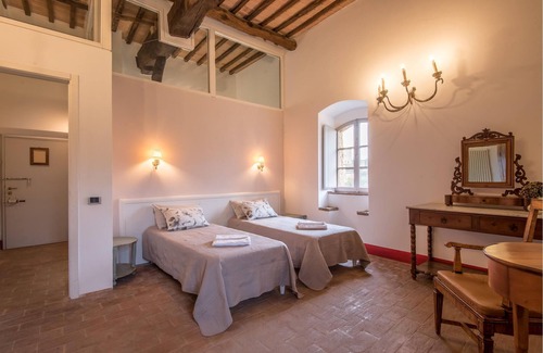 This apartment is located in a historic tower in the Castello del Poggiarello, a beautiful and characteristic complex with 7 apartments situated in the medieval village of Stigliano, about 20 km from the beautiful city of Siena and in a panoramic position on the hills.
