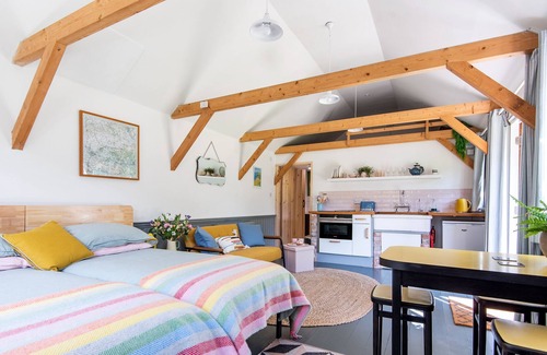 Whether you want to relax and unwind or venture out to explore the coast and countryside, this attractive property is sure to tick all the boxes. Daphne's Studio has a well-equipped kitchenette with a fridge, sink, hob and oven with microwave, toaster, and kettle. There is a comfortable sitting area with a sofa and coffee table, a dining table with stools, and twin single beds sitting side by side to create a super-king size bed. The open-plan living area has a television and french doors which can be opened to connect the space to the pretty south facing gardens. A well-appointed shower room with wash basin and WC completes the accommodation.
