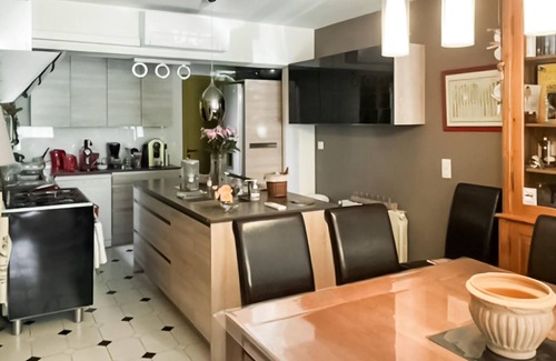 Enter this family home and immerse yourself in the exuding feeling of comfort and well-being. The house, full of life and numerous decorative objects, invites you to feel at home. You can enjoy your everyday vacation here while cooking together or relaxing on the sofa.