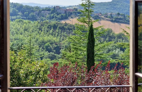 In a quiet location and with a great view over the countryside welcomes you this very spacious stone house in Umbria. Ideal for a vacation with the family or large number of friendly couples, you can enjoy the amenities of this domicile. Look forward to tastefully and stylishly furnished bedrooms and common areas. Play billiards together or enjoy private dinners or shared meals with the whole group on the balcony or terrace. The park-like garden invites you to linger and relax in many beautiful corners and crowns with the pool, which invites you to swim and sunbathe.