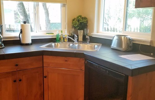 Home is relaxing, open, and has a fresh feeling with 2 bedrooms and 2 bathrooms, located on the main floor level. One bedroom has a queen bed, and the other guest bedroom has 2 twin beds. Traveling up the spiral staircase, an open loft bedroom awaits you with 2 twin beds. Kids always love the loft! Home has been remodeled to be a great vacation spotlight! Comfortable furnishings, we provide free fast internet and a flat screen TV. Fully stocked kitchen with custom Knotty Alder cabinets. Bedroom linens are what you expect from a fine hotel, down comforters, and crisp clean sheets. Charming private patio off the master bedroom, as well as a private patio off the kitchen, so you may easily enjoy evening barbecues (gas grill included). In addition, enjoy starry nights around the backyard fire pit. A perfect staycation retreat!