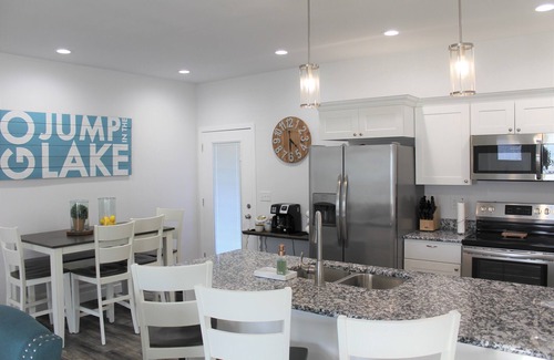 Villa: 4 bedroom, 2.5 bath Villa at the lake! Part of 2 separate villas that were completed in late 2021. Both have been stocked with brand new furnishings and linens to make your lake trip comfortable and one to remember. HAVE A LARGE GROUP? ASK US ABOUT ADDING THE ATTACHED VILLA...