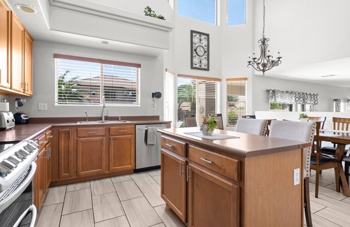 The moment you enter this home you will be struck by the attention to detail and comfortable open spaces. Tucked away in a quiet, residential neighborhood, this wonderful, family-friendly home has it all! You enter through a cozy living room with comfortable furnishings and a big screen smart TV and fireplace. The open floor plan brings together a well-equipped full kitchen including a table with seating for 8 that overlooks the downstairs family room.