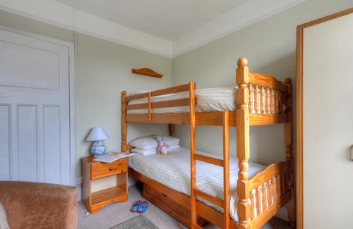 A very spacious, detached chalet bungalow enjoying a quiet position in the popular coastal village of Charmouth offering stunning sea and coastal views along the World famous Jurassic Coastline to Golden Cap and beyond. Ideal for families or a group of friends, the property has four bedrooms, a spacious lounge with dining area and good sized, gently sloping lawned gardens where the children can play whilst you can enjoy the views whilst relaxing with a glass of wine. For those wanting to spend time fossil hunting and rock-pooling, the beach is just a two to three minute walk away along a nearby footpath. The village main street has two pubs and a handful of privately owned shops and cafes with regular bus services linking the village with the nearby towns of Lyme Regis, Bridport, Axminster and West Bay. A lovely, traditional seaside holiday home perfect for a relaxing stay at any time of the year. GROUND FLOOR Open plan lounge and dining room with sea views Kitchen Bathroom : Bath with shower over, basin & w.c. Bed 1 : Kingsize bed with Hypnos mattress. Sea & coastal views Bed 2: Double bed with Hypnos mattress Bed 3 : Bunk beds FIRST FLOOR Bed 4 : Twin beds with balcony Bathroom : modern contemporary bath, floor standing taps with hand held shower attachment & basin Separate w.c . OUTSIDE Large enclosed mature garden Decked sun-lounge with sea views Balcony off Bed 4 GENERAL INFORMATION Ample parking and garage Utilities included Linen and Towels included - beds made-up Not supplied , please bring or hire: travel cot, stairgate, highchair FACILITIES TV/DVD/Google Chromecast/Amazon Echo WiFi Electric fan oven/hob Dishwasher Fridge/freezer Microwave Washer/dryer Part gas central heating, part electric heating