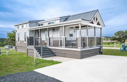 Time2unWINE - 035 - You don't have to tell me twice. Time2unWINE is calling your name for some relaxation, fun in the sun, music and wine tasting. The Hill Country spirit(s) start with the outdoor covered seating on the front porch. Outdoor dining with a beautiful view of the clubhouse/pool is certainly a must! The Master Bedroom queen bed, queen hideaway bed in the Living Room and two twin beds in the loft allow your party to be comfortably spaced out. Every hour here certainly is Happy, well, you get it! It's Time2unWine at Firefly Resort. -We certainly love our four legged friends, but this tiny home is not pet friendly. Thank you for understanding.