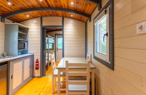 The Tiny Home Morgane in Saint-Andiol is the perfect accommodation for a stress-free holiday with your loved ones. The 20 m² property consists of a living room, 2 bedrooms and 1 bathroom and can therefore accommodate 4 people. Additional amenities include Wi-Fi with a dedicated workspace for home office, a TV, air conditioning, a fan as well as beach/pool towels. In addition, a table tennis table, a pool table, gym equipment and a shared sauna are available for your use. A baby cot is also available.
