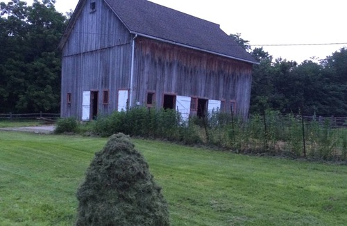This is a charming, brick rustic 1870's summer kitchen freshly renovated. It is an efficiency with living area including kitchen area, and separate bath with shower. It is stocked with dishes, microwave, frig, nu-wave cook top, toaster oven, coffee pot, new memory foam queen bed with fresh cotton sheets. It sits on our 60 acre hobby farm with mini-horses, mini-cows, and a kitty. Roam our hobby farm at your leisure and enjoy our homemade monster cookies. Rubber boots to traverse creeks provided!