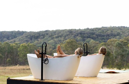 Tiny Maggie sleeps up to four with a queen bed in the loft, and a double bed by the window. There is also a reverse-cycle air conditioner and heating unit. Tiny Maggie features two outdoor bathtubs on the deck – unwind and indulge in the epitome of relaxation! Tiny Maggie is suitable for a two-wheel drive. Please park and walk 5 metres.