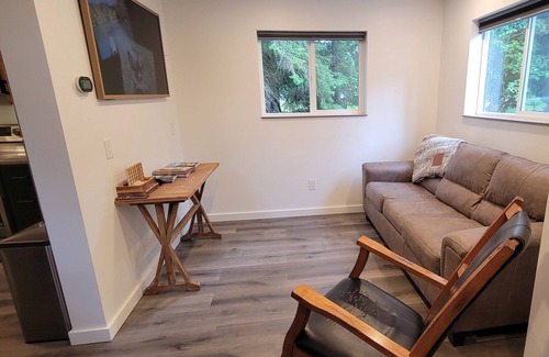 Enjoy a peaceful retreat in a newly constructed tiny home, surrounded by all the beauty and spectacular Alaska has to offer. Located just outside Kenai Fjords National Park, 6 miles north of iconic downtown Seward, this property sits in a quiet neighborhood at the end of the cul-de-sac. From this convenient location, you will be close to all your favorite Seward adventures. Explore the many hiking trails and glaciers in the area, view salmon at Bear Creek nearby (June-August), go on thrilling zipline adventures, or take the family for a day of fun at the Alaska Sealife Center. The Seward Boat Harbor, local restaurants, grocery stores, and other supplies are a quick 10-minute drive from your home base.
