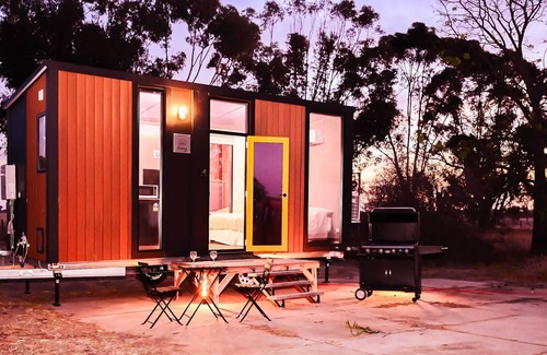 This tiny home lets you experience the charm of the Australian countryside, with easy access to local highlights. Visit Cactus Country for a surreal desert landscape, explore Shepparton Museum for indigenous culture and local history, or enjoy the Murray River with its sandy banks, red gums, and outdoor adventures like fishing and kayaking.