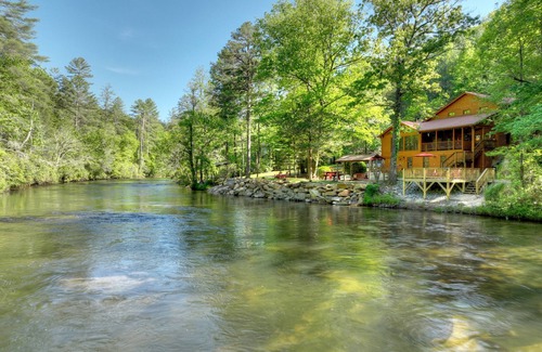 Toccoa River Frontage - Steps from the water, Sleeps 10, Fire Pit, Pet Friendly is located in Blue Ridge. Toccoa River Frontage - Steps from the water, Sleeps 10, Fire Pit, Pet Friendly provides accommodation, featuring Internet, Parking, Balcony/Terrace, among other amenities. This Cabin features Internet, Parking, Balcony/Terrace, to make your stay a comfortable one.