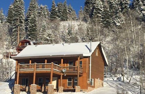 Beautiful mountain retreat in the aspen and pine with amazing views of Uinta Mountain range and more. 15 miles from Park City and Deer Valley. Pets welcome in this outdoor lover's playground. Bring your ATVs or snowmobiles to ride miles of private roads and trails. Hiking, snowshoeing, cross country skiing, fishing and abundant wildlife viewing are available. 2800 sq ft, 4 bedroom plus loft (2 kings 2 queens, two twins), master has full bath with walk in shower and large tub. Two living areas with TVs and lots of seating. Full kitchen well appointed with cookware, utensils etc. Large deck with sweeping views, gas grill, and lots of seating. DirecTV, WiFi, Blue Ray, DVD. Four wheel drive with snow tires or chains required for winter access. No smoking and no pets on furniture please.