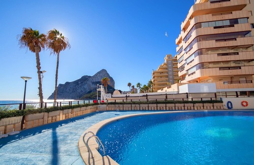 Playa Levante: Child friendly, cosy apartment block "Topacio I", built in 2000. 2.1 km from the centre of Calpe, 20 m from the sea, on the beach. For shared use: beautiful garden to relax, swimming pool (seasonal availability: 01.Jan. - 31.Dec.). Children's pool, outdoor shower. In the house: lift. Shop, grocery 100 m, supermarket 300 m, restaurant 20 m, pedestrian zone 20 m, pub garden, bus stop "Avda.Juan Carlos I" 50 m, sandy beach "Playa de la Fossa" 20 m. Sports harbour 500 m, marina 500 m, surf school, sailing school, tennis 80 m. Nearby attractions: Peñon de Ifach, Salinas. Please note: suitable for families, baby equipment on request (extra). Additional accommodations can be booked.