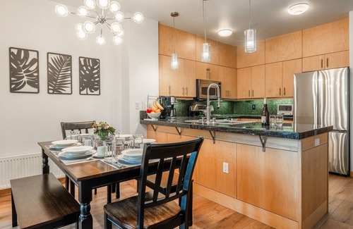 Step inside this charming corner unit featuring a bright and airy layout, complete with a mudroom entrance—ideal for organizing ski or hiking gear after a fun-filled day outdoors. A warm and welcoming living area greets guests with an L-shaped sofa that converts to sleep 2. Sip cocoa around the cozy gas fireplace on colder nights or gather for a family movie night on the wall-mounted TV. Designed to bring out the best in every cooking enthusiast, the fully equipped kitchen boasts high-end appliances and everything necessary for a home-cooked meal. On bluebird days, step out to the private patio and fire up the gas grill for a delicious barbecue. The patio is also perfect for savoring early morning coffee, made to perfection using the bean grinder and milk frother. Reconnect around the spacious 6-person dining table to enjoy sit-down meals, quick snacks, or even a friendly game of cards. After an adventurous day, retreat to the serene comfort of the primary bedroom with a luxurious Sleep Number king bed, TV, and private bathroom. For additional accommodations, the lovely guest bedroom is furnished with a plush queen bed and TV. A stacked washer and dryer are tucked away for convenience.