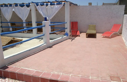 Traditional house renovated in the Berber spirit with modern comfort. Terrace with superb view of the palm grove and the Anti Atlas. Equipped with 2 bedrooms, living room with flat screen TV, wi-fi, dining area, fitted kitchen (fridge-freezer - stove with oven - electric coffee maker - toaster - kettle - juicer, etc ...), bathroom with large family shower, ground floor terrace with dining area, barbecue, garden, secure parking. Overflowing swimming pool.