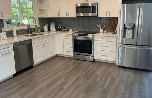Dedicated high speed WiFi allows you to stay as connected as you like, and we also have a large smart TV with access to Netflix and Amazon Prime. You can also log into your own accounts on Disney+, Apple Plus and Hulu. Our well-equipped kitchen provides all that you need to cook however much (or little) as you desire.