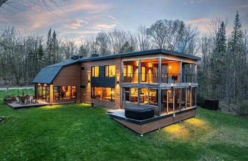 Just past the renowned Spa Eastman, nestled in the stunning landscape of the Eastern Townships, lies Villa Tranquilla — a bright, spacious getaway set on 25 acres of private land. The property features expansive lawns, vibrant gardens, a natural swimming pond, a hot tub, an outdoor fire pit, and peaceful forest trails just waiting to be explored.