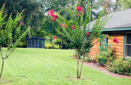 Relax at this tranquil treasure. You will have your own guesthouse. We enjoy sharing the back yard and invite you to walk the labyrinth or rest in the screened gazebo out back. Short drive to Harris Neck Wildlife Refuge, a bird lovers paradise! This 600 square foot guesthouse is perfect for one or two guests. No pets allowed as our two small fur babies love people but not other dogs.