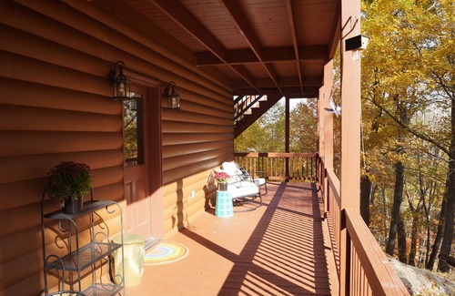 Our treehouse retreat has two large wraparound decks with multiple seating areas to enjoy the amazing views of the New River and long range views of the mountains. You just feel the stress melt away surrounded by tall trees and rhododendrons. Enjoy the sunrise or sunset with your favorite beverage and catch a glimpse of the wildlife including deer and turkeys wandering by. The cabin is perfect for a tranquil getaway with family and friends. Additional side deck provides a space to enjoy a fire in the chimenea.