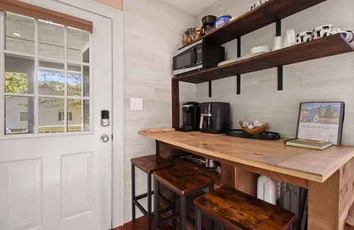 Sasquatch Cabin is perfect for a small family retreat or a romantic couples getaway on the banks of South Fork New River. This quaint cabin provides all the essentials for a vacation filled with rest and recreation! Sasquatch Cabin has 1 bedroom with a loft, each with queen beds and can accommodate 4 guests. The kitchen is well-equipped with Keurig and drip coffee makers, flatware, and toaster. Indoors, there are smart tv's, an electric fireplace, and reliable wifi for those needing to work from home. Outside, enjoy beautiful scenic river and mountain views, and relax by the fire pit or rent a kayak or canoe for a leisurely float down the river! Everything you need for a relaxing stay is provided, including linens, towels, toiletries, and cleaning supplies.