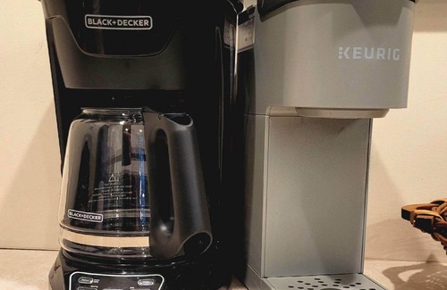 KITCHEN – Well-equipped kitchen with lots of counter space, recessed lighting, extra-large double sink under bright window, laptop workstation with chair, and stainless-steel appliances - huge refrigerator and freezer, dishwasher, flat-top stove & oven with over the range microwave, and toaster. Keurig & 12-cup Mr. Coffee machines and fully stocked with dish sets, pots and pans, silverware, mixing bowls, cups, wine glasses, mugs, pitchers, cutting board, cooking utensils, blender, crock pot and pantry items - everything needed to prepare meals at the cottage. Exterior door to side patio with large gas (propane) grill/BBQ.