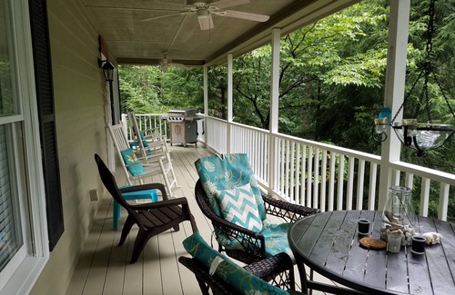 Come to the Appalachian mountains and enjoy nature and drop out from the hustle and bustle! This home is nestled within a gated 5600 acre wildlife management area and sleeps 8. Neighborhood amenities include securty at the entrance gates, 1 Olympic indoor & 2 outdoor saline pools, tennis courts, miniature golf, fitness center/game room, and day parks with walking trails along the Coosawatee River. Tube down the Coosawatee River on a summer day or go to nearby Carter's Lake for breathtaking views of the valley below and visit the marina. Hike the Appalachian Trail, the Benton/McKaye Trail or climb Amicolola Falls from the bottom - the tallest waterfall in Georgia! Enjoy fine and local dining at the Ellijay restaurants or the Pink Pig B-B-Q in Blue Ridge a favorite of former President Carter. Shop for antiques and local products in downtown Ellijay, visit one of the six local winery's tasting rooms or R&A Orchard on Hwy. 52 in Apple Alley. Ellijay is the Apple Capital of Georgia!