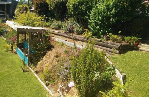 Built around a trunk of an old olive tree, this treehouse has a loft bed and beneath that a sofa bed for an extra person. Doors open onto a sunny deck. The shower, toilet and basic kitchen is shared with the other cabins. This cabin is part of a complex consisting of a house and 3 other cabins. At times you will be the only one on the property, at other times guests will be in other accommodation. The gardens are mature and have many areas to be away from others. There is a flat lawn area for games or just relaxing outdoors.