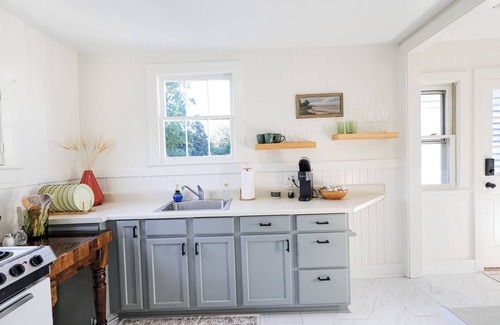 Step inside to find original hardwood floors, sunlit historic windows, and plenty of room to relax. The Treehouse includes a full kitchen, dining room, living room, laundry room, and Smart TVs in every bedroom and the living room. For a restful night’s sleep, all bedrooms feature blackout shades and curtains.