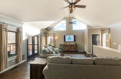At Chattanooga Vacation Rentals we are a family owned and fully licensed operation, run by a team of locals with experience and passion for Chattanooga. We provide the space, so you can make magnificent memories! Amazing Views, Hot Tub, Game Room, with no other people in sight!! What more do you need on a vacation? This cabin is located high in the foothills of Lookout Mountain, with a secluded perch on the very top of a foothill. Soak up the panoramic views of Lookout Mountain and Cloudland Canyon. With the seclusion of a rural setting and the romantic train in the distance, this is the perfect getaway and still only 20 minutes to downtown Chattanooga. Treetop Retreat is also pet-friendly! Pet fees are $49 per pet, and can be processed after booking. About the Property: The driveway is steep, but it is paved the entire way up with a carport and driveway parking. Upstairs Level: •Open Living and Kitchen area with lots of sunlight • Bedroom with a queen bed and twin bed and a walk in closet • Bathroom with a step in shower. • Kitchen is well equipped with dishes, pots, pans, cooking utensils, an electric stove, dishwasher, and fridge. • Closet converted into a mini office space with room to set up a lap top if you need to work remotely • Deck with a beautiful view off the living room • TV has streaming for Netflix, Hulu, etc and has cable with ESPN Downstairs: • Primary bedroom with a king bed, TV, en suite bathroom with a tub, and walk in closet. • Game room made from a converted garage with a pool table and foosball table, also has a TV so you can catch stream the big game or put on some music. • Hot tub on lower deck. IMPORTANT THINGS TO NOTE: • The driveway is steep and long. It is paved the whole way. We have seen drivers with a lightweight pickup truck have difficulty when it is raining. If the driveway is snowy or icy, the driveway may not be usable (this is a rare occasion). • Maximum occupancy of 5 guests at all times . * Primary responsible renter must be 25 years old. • We require a photo of your ID and a photo of yourself as well as your signature on our rental agreement to complete your reservation. We will send a reservation confirmation email to you, and the e-doc rental agreement is located at the bottom of the email(green tab.) Please complete all lines on the rental agreement. .• Pet Friendly- 3 pets max. We do charge a pet fee fee of $49 per animal. Please keep your pet crated if you are not present in the house with them during the day time and evening hours. Pets are NOT allowed on the furniture and bedding during your stay, and to pick up all yard pet waste. Note: Most of our properties are rural and wooded. Please do not expect a perfectly manicured lawn. We cut a little here and there when we see fit to do so. We do not discriminate on the basis of race, color, religion, sex, handicap, familial status, or national origin. We love guests of all types as long as they pay for the use of the property and take good care of that property during their stay.