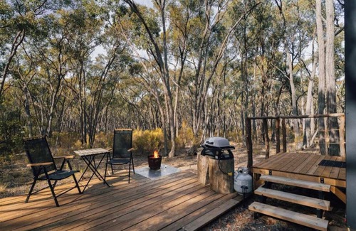 Treetops 1 by Tiny Away is located in Walmer, about a 1.5-hour drive from Melbourne Airport and just 27 minutes from Bendigo. This off-grid holiday home is surrounded by bushland, neighbouring farmlands, wildlife, and charming towns like Maldon, Golden Square, Kangaroo Flat, and Castlemaine.