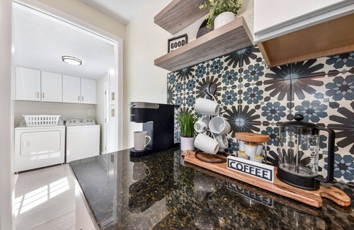 *There is an exterior doorbell camera located at the front entrance that records upon motion. There is a camera on the front left side of the house near the backyard entry gate. The last camera is in the backyard on the corner of the studio entrance, overlooking the entire backyard and house. These are in place for your safety and protection! Please do not touch, cover or tamper with the cameras. Doing so will result in immediate eviction of all guests w/no refund for unused nights. There are NO cameras inside the home.