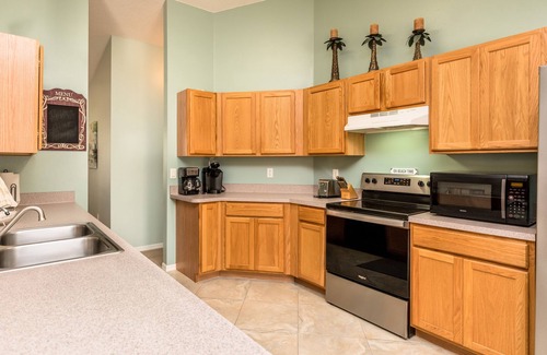 This home features a complete Master Suite, with private tub and shower. There are two additional Queen Bedrooms with Smart TVs and a shared Bathroom. The living quarters provide a large open Kitchen and living room with pool view. This split plan offers privacy for the master and the two additional bedrooms. The pool area features a propane grill, pool loungers, outdoor furniture and a table set to dine. Beach chairs are in the garage. Perfect multi-family/couples arrangement!