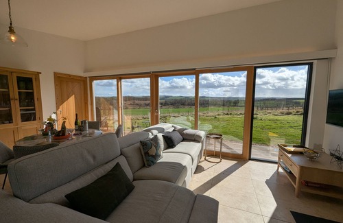 Tweed Hideaway is one of three fabulous open plan properties on an organic farm in the Scottish Borders, only a few miles from the market town of Kelso. In the summer and autumn months, there are thousands of organic sunflowers decorating the landscape.