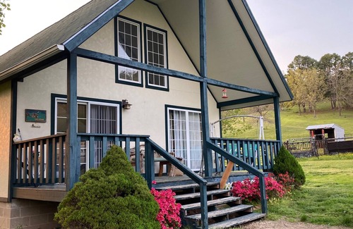 Twin Spirngs Ranch is located in the foothills of the Ozark Mountains. It is named for the two springs coming out of the cave from under the main house. Guests are welcome to walk down and explore the springs. Our guest cabin has a beautiful view of the Ozark Mountains and the horses and cattle in the pasture. If you like to hike there are trails avalible, just remember to shut the gate behind you. We are located 11 miles west of Siloam Springs and 12 from the first float (canoe/kayak) resort on the Illinois river. Natural Falls is about 6 miles from us. We can also host your horses if you need a stall or lot for them (extra charge).