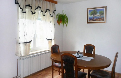 House 5194 in the town of Smoljanac, Plitvice - Lika and Gorski kotar, contains accommodation units of type Apartment (3), Room (1). The house is categorized as "For families with kids". As the house is divided into several accommodation units, other guests will most likely be present during your stay. The hosts will be in residence during your holiday. The house owner is under no obligation to accept additional persons and pets that were not stated in the reservation request and it is necessary to report them in advance. Apartment can accommodate 5 guests. Beds are situated in 2 sleeping rooms, but also in the living room, within 69m2. Guests can use a private balcony to enjoy the warm summer evenings. Food can be prepared using barbecue which is shared with other guests too. INCLUDED IN THE PRICE: tourist tax, final cleaning, air-conditioning, central heating, parking, internet, portable barbecue. OPTIONAL ADDITIONAL COSTS: laundry (€7.00 washing). The availability of additional services for your chosen dates of stay, as well as their prices (if none are listed) must be checked ahead of time. Any additional services not shown in the price calculation are payable directly to the property owner and only if used by the visitor. ROOMS AND BEDS Living room (17 m2): Sofa (1) Dining room (9 m2) Bedroom 1 (15 m2): Double bed (2) Bedroom 2 (11 m2): Double bed (2) Kitchen (4 m2): Standard equipment: Refrigerator, Stove, Sink, Additional equipment: Oven Bathroom (5 m2): Bathtub Hallway (8 m2) Balcony (6 m2): Access from: Living room AMENITIES Infield (Well-kept), Courtyard (500m2, Area suitable for children, Sitting area), Parking lot (Number of parking spaces: 4, Distance from the house: 3 m), Barbecue (shared), WiFi Internet, Laundry service, Portable barbecue LOCATION AND ACCESS Facility is situated near a local road Car access possible: Yes The facility is situated in relatively quiet surroundings The property is surrounded by greenery DISTANCES Shop: 1.4 km Urgent medical care: 20 km