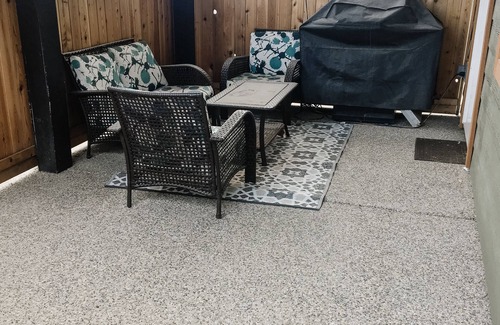 New ground level entry 2 bedroom suite with private patio, 2 large bedrooms and all the comforts of home. We live upstairs but the ground floor walkout is a self contained private space with a separate entrance. One bedroom has a new king size bed and the other bedroom has a queen sized bed.